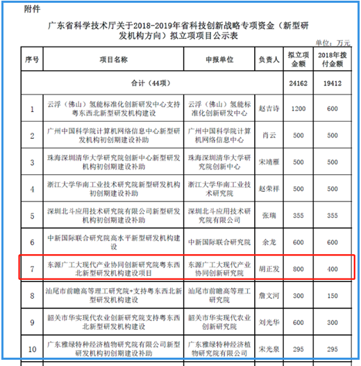 本网讯 近日,东源广工大现代产业协同创新研究院(以下简称研究院)获批广东省高水平新型研发机构建设的立项并获得专项资金800万。