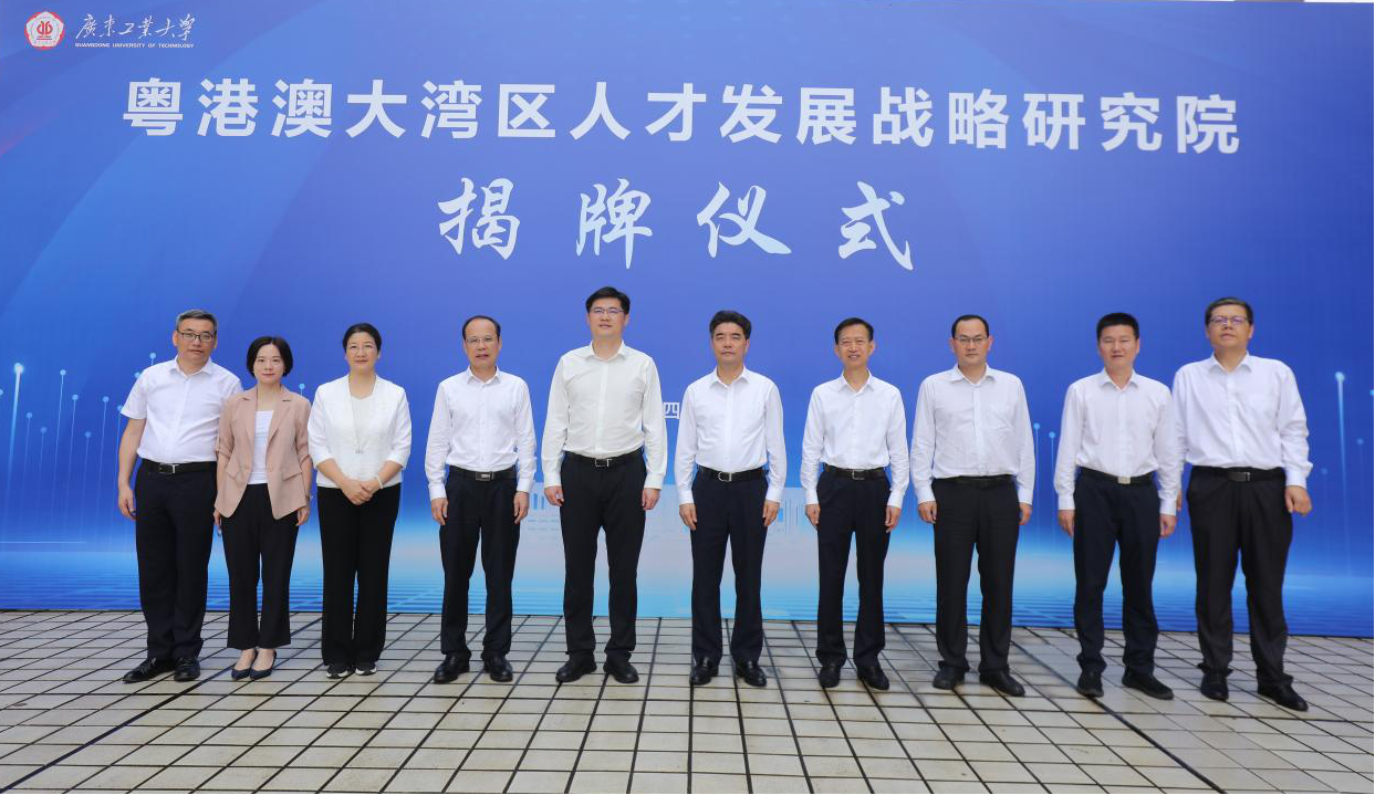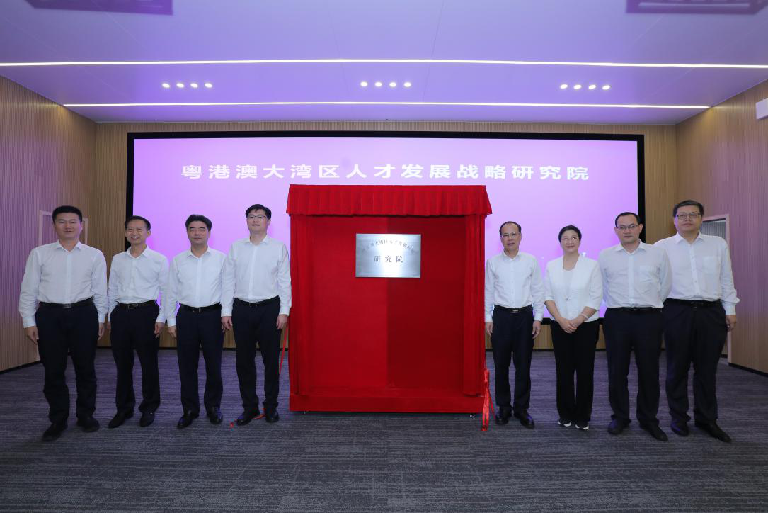 胡钦太、邱学青、陈良友、朱蔚蔚、张育广以及省委组织部有关同志共同为粤港澳大湾区人才发展战略研究院揭牌。