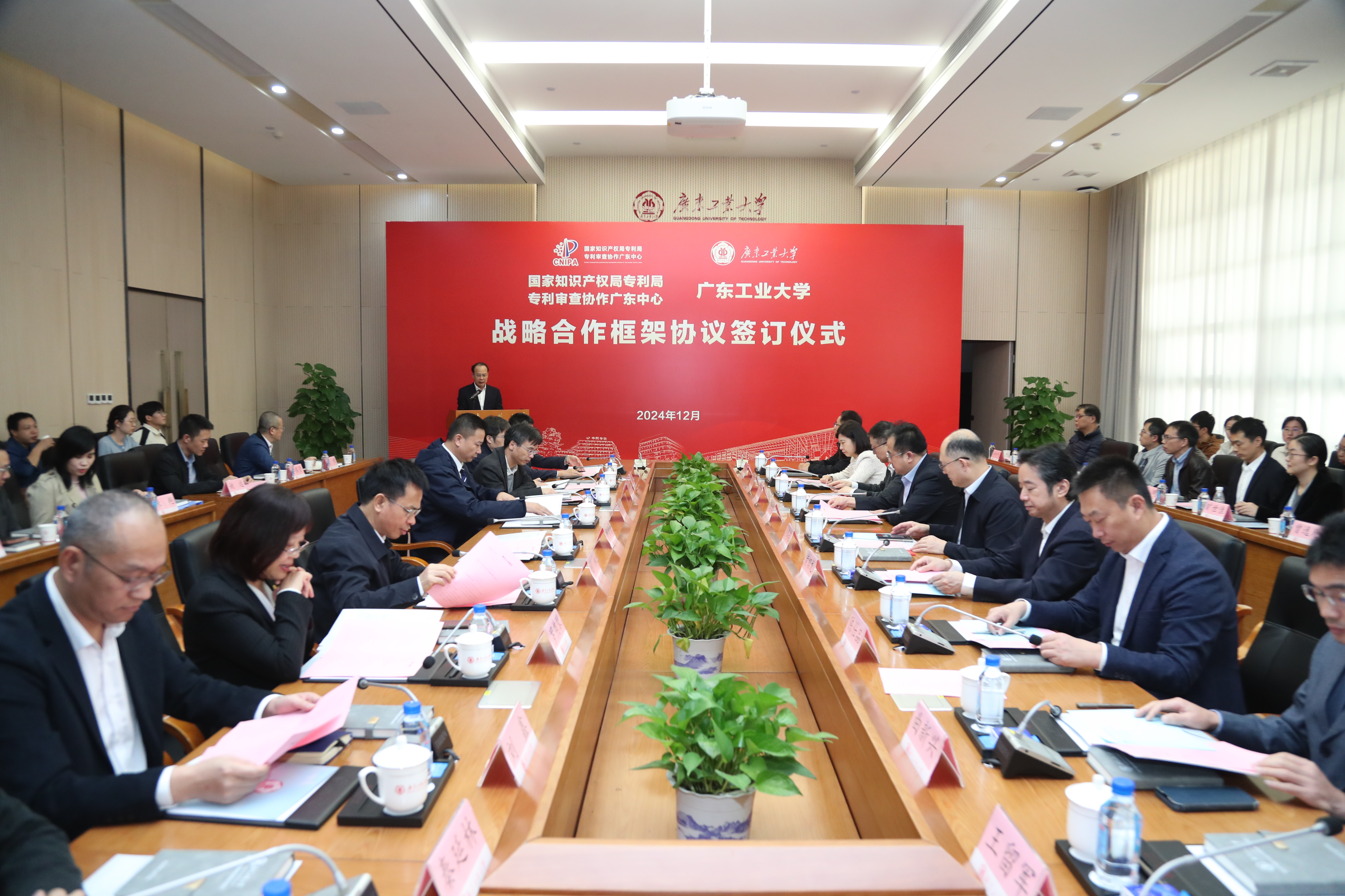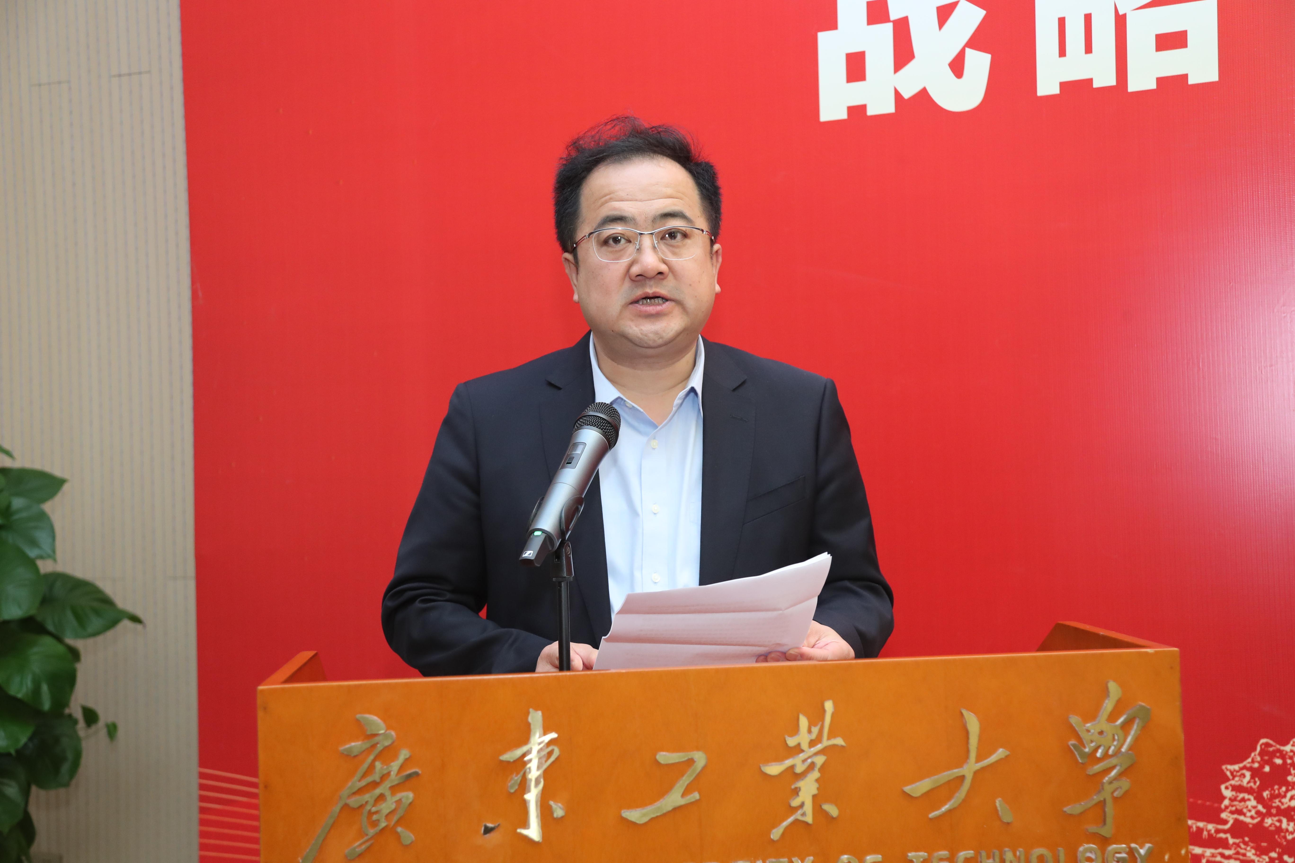 国家知识产权局党组成员、副局长卢鹏起,国家知识产权局专利局专利审查协作广东中心党委书记、主任王智勇,广东省市场监督管理局副局长黄绍龙,广工党委副书记、校长邱学青,国家知识产权局运用促进司副司长陈仕品、二级巡视员陈明媛,国家知识产权局专利局专利审查协作广东中心副主任曲新兴,广东省科技厅二级巡视员夏奇峰等领导出席签约仪式,广工相关单位、部门主要负责人以及科研团队代表参加仪式。签约仪式由广工党委常委、副校长鲁仁全主持。