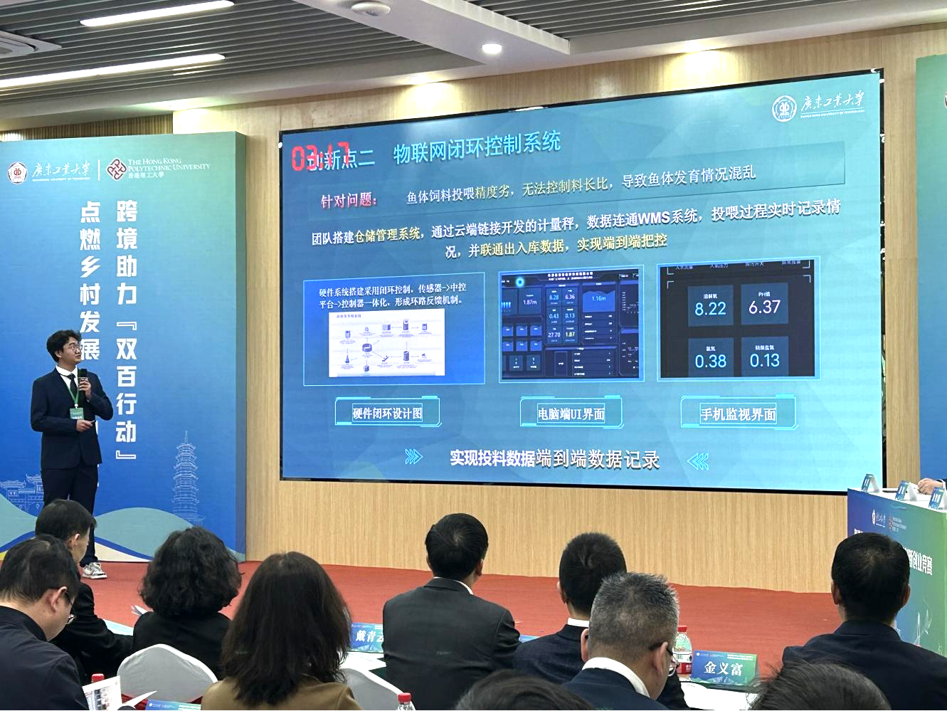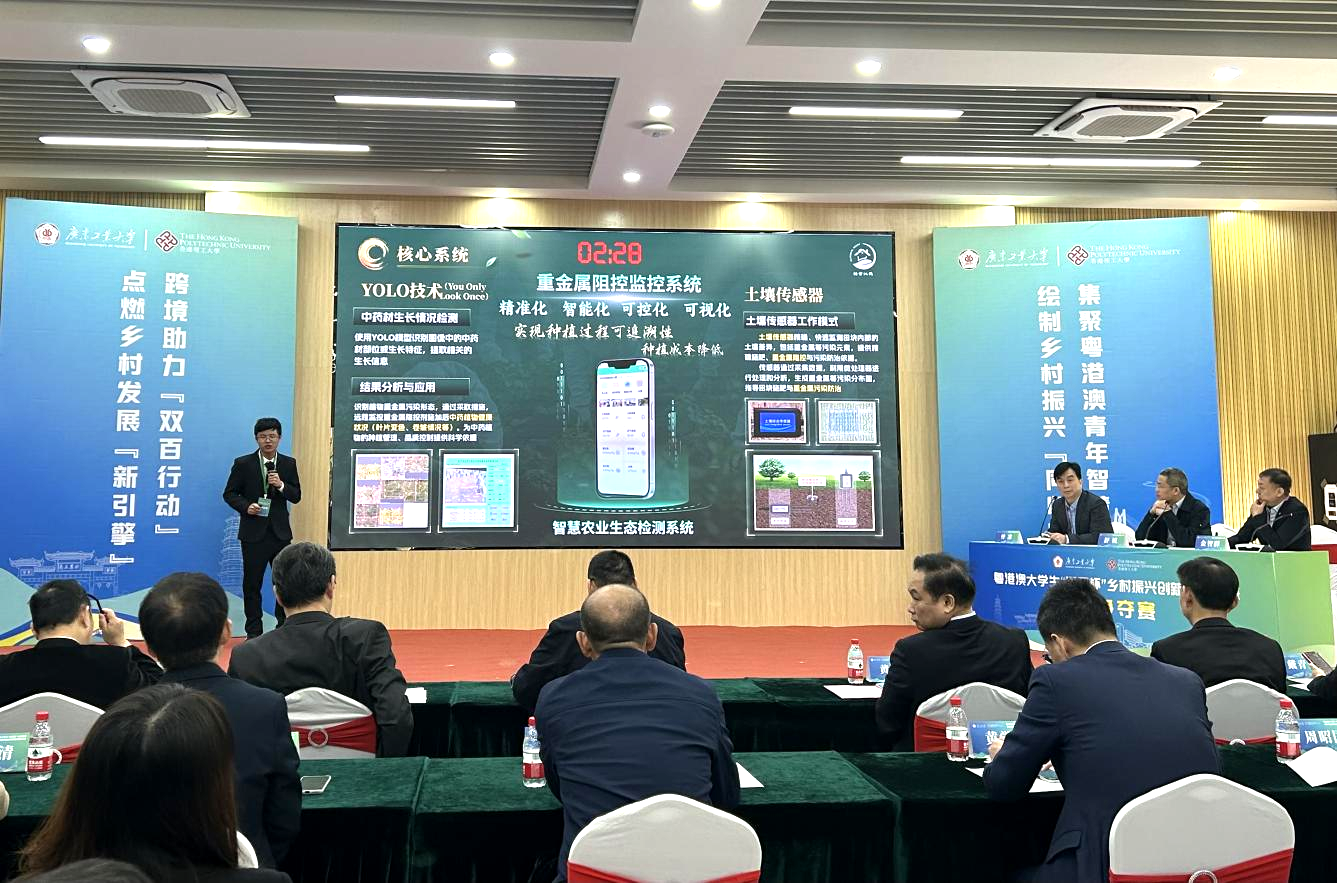 主办方先后组织由香港理工大学、香港岭南大学、澳门城市大学、开元网页版_开元(中国)等粤港澳三地大学生组成的“双百杯”竞赛调研团,奔赴东源、郁南等地实地考察调研,深入了解县域发展现状与需求,深入了解广东的历史文化、村情、村貌、风土人情,增强对乡村振兴工作的“第一感官”认识,掌握助力农村事业发展的第一手资料,进一步明确团队竞赛作品的重点和方向,进而为乡村振兴工作提出具有前瞻性、针对性和可行性的方案和建议,形成一批可运用、可转化、可推广、可复制的大赛成果。如揭榜挂帅赛道“智信先锋”团队结合东源县发榜的养殖技术优化项目需求,通过数字化和智能化手段提升高密度养殖效率,并将这一技术向西樵、郁南等高密度养鱼的县区进行推广;开放式赛道“祛金沁药”团队自主研发的内生菌和MICP/MIPP技术,能减少重金属的有效态和中药植物的吸收,保障中药材品质与安全;粤港澳联合赛道“声灵智能检疫”利用声纹识别技术,让检测精度可达94.96%,为中小型生猪养殖户提供智能疾病检测与预警解决方案。