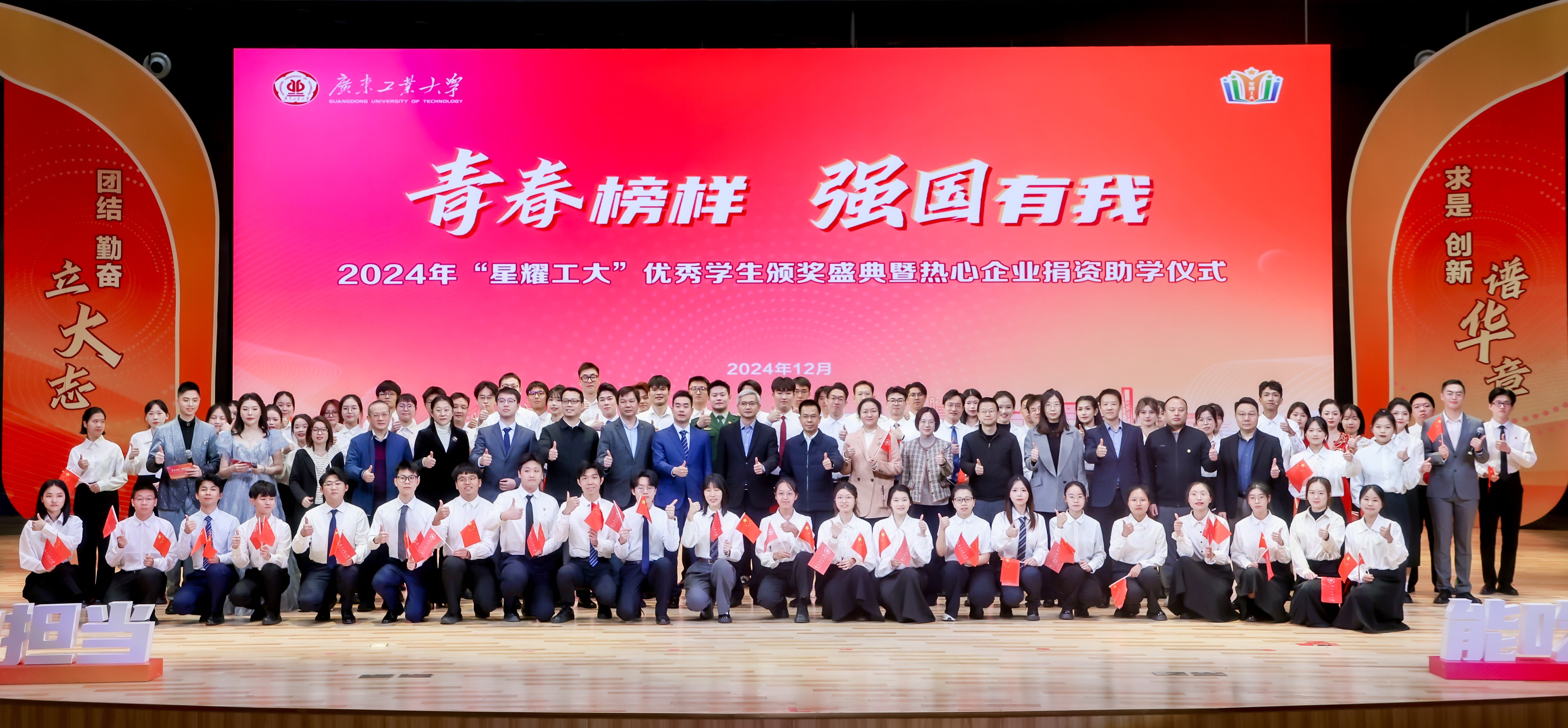 活动表彰了一批优秀学生榜样,学校党委办公室、校长办公室、党委组织部、党委宣传部、教务处、党委学生工作部、研究生院、心理健康教育中心、校团委、对外联络与校友事务办公室等单位相关负责人,以及旭日集团、广州睿达科教投资有限公司嘉宾分别为2023-2024学年国家奖学金、2023-2024学年国家励志奖学金、第十届“星耀工大·筑梦成长”校园之星评选“特色标杆之星”、2024年学校“十大攀撑学子”等获奖学生颁奖。