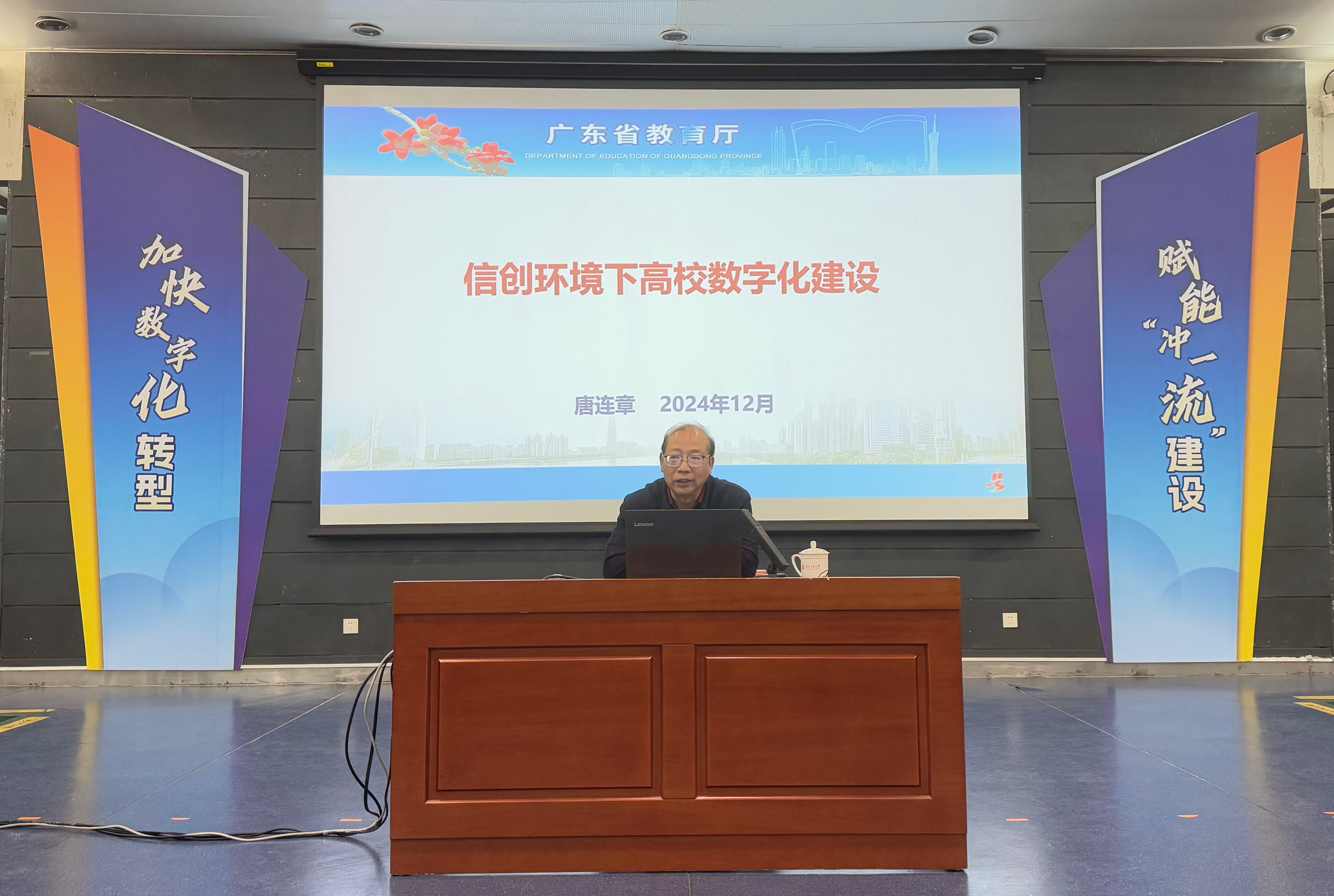 会上,信息化办公室和网络信息与现代教育技术中心分别介绍了2024年学校信息化工作举措,总结了近年来学校信息化建设经验成果,举行了学校数据中台与融合门户上线启动仪式,对2024年学校“信息化工作先进集体”“信息化工作先进个人”予以表彰。 会议还邀请了广东省教育厅事务中心(电教馆)原主任唐连章作《信创环境下高校数字化建设》专题讲座。
