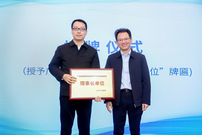 广工党委学生工作部负责人作专委会近两年工作总结暨下一年度工作计划汇报。省教育厅基建财务处(学生助学工作管理办公室)负责人为开元网页版_开元(中国)授予“理事长单位”牌匾。