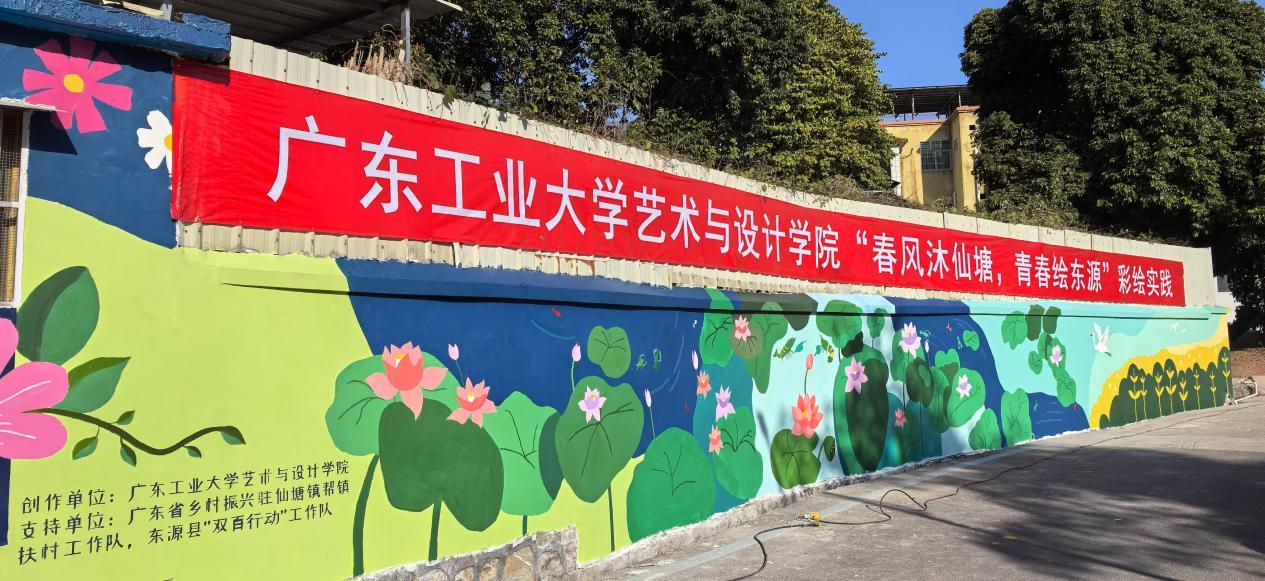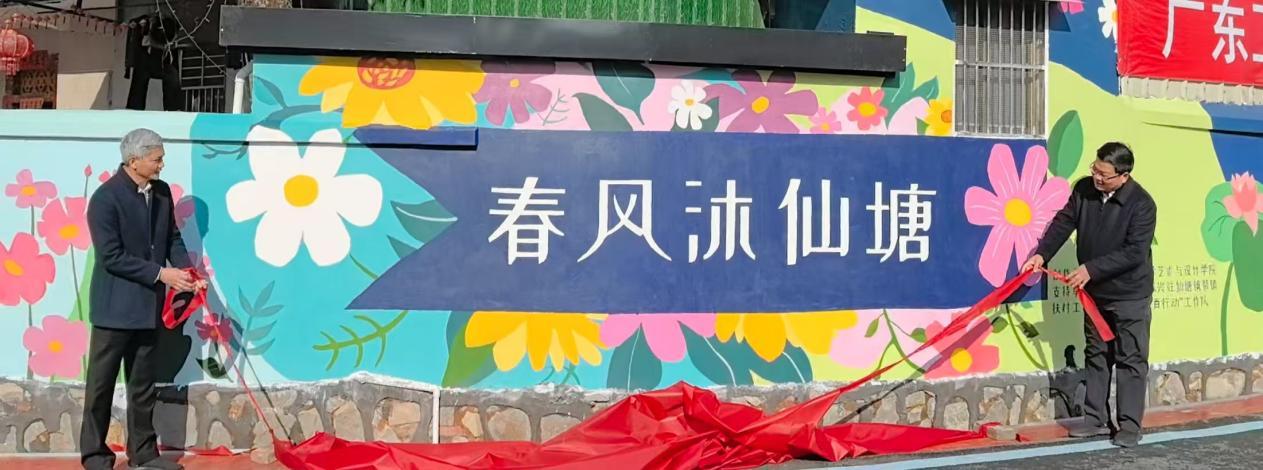 “春风沐仙塘”墙绘,凝聚了广工大艺术与设计学院师生的艺术和创意,将色彩、图案与空间有机结合,用绘笔给仙塘村披上彩衣,赋予其更多文化价值,为东源县和仙塘镇增添了一抹亮丽的风景,必将成为东源深入实施乡村振兴战略的文化名片和展示窗口。