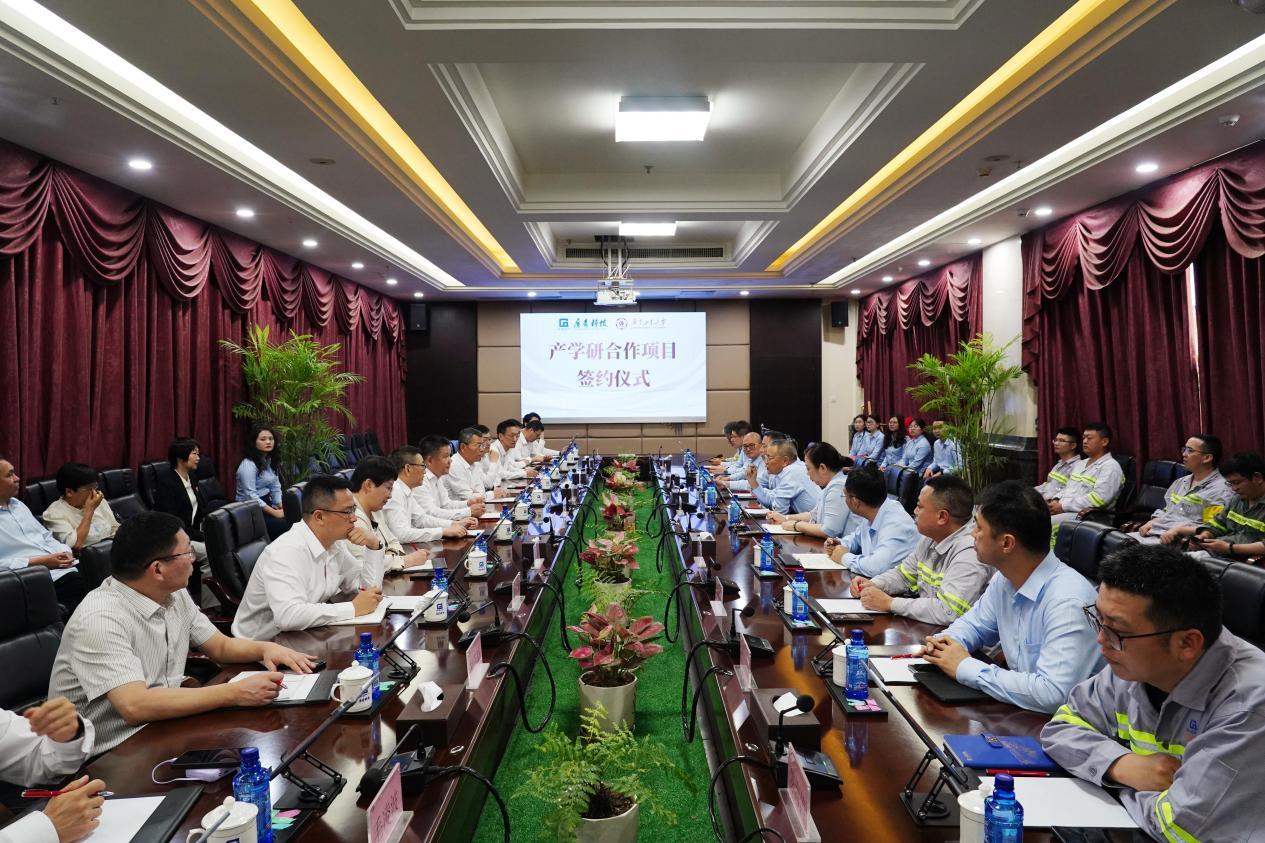 4月23日,广工与广东广青金属科技有限公司(以下简称广青科技)产学研合作项目签约仪式暨“红土镍矿低碳高效冶炼工艺技术联合研发中心”揭牌仪式在广青科技举行。受校长邱学青委托,校党委常委、副校长杜承铭出席仪式,低碳冶金工程创新交叉研究院院长王中丙,广青科技党委书记、董事长王骏,广青科技董事、总经理何丛珍出席仪式,双方相关部门负责人参加仪式。