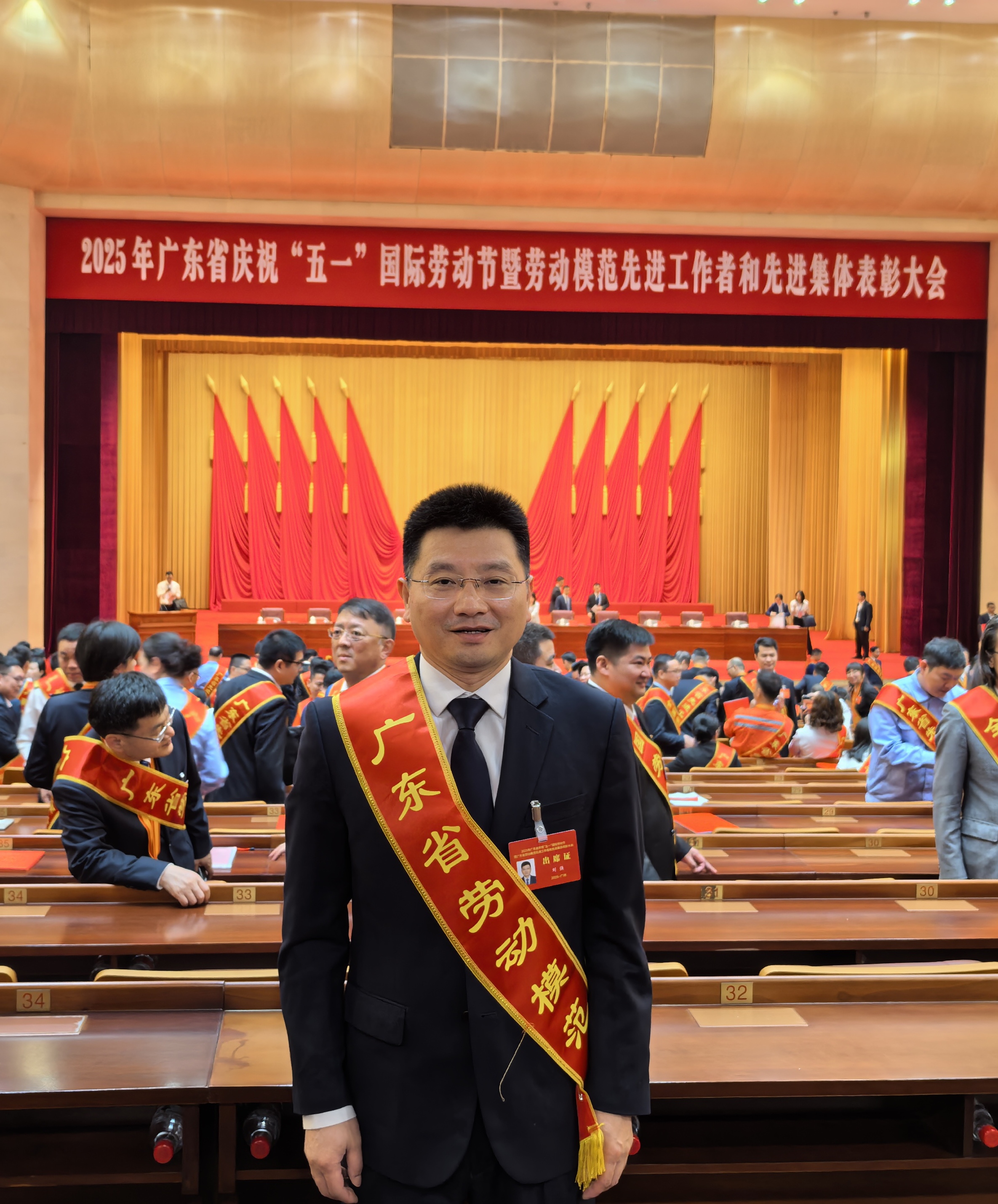 4月29日上午,2025年广东省庆祝“五一”国际劳动节暨劳动模范先进工作者和先进集体表彰大会在广州举行。会上,394人受到表彰,包括354名广东省劳动模范、40名广东省先进工作者,同时还表彰了97个广东省先进集体。我校机电工程学院刘强教授被授予广东省劳动模范称号,并参加表彰大会。