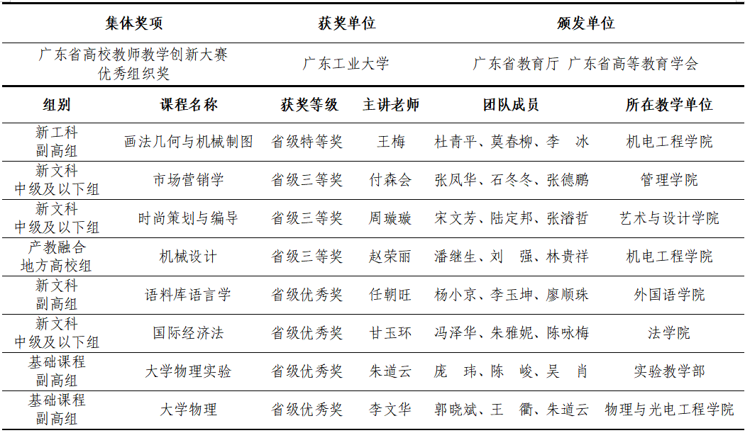 开元网页版_开元(中国)第五届广东省高校教师教学创新大赛获奖情况