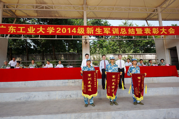 承训部队领导作了总结讲话。会上还宣读了2014级新生军训表彰决定。校领导和部队领导为军训获奖单位授予锦旗。