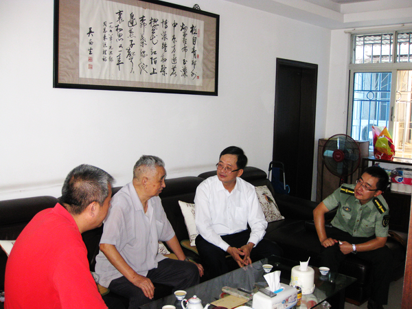 本网讯在国庆65周年来临之际,为贯彻落实中共中央办公厅、国务院办公厅关于举行中华人民共和国成立65周年庆祝活动的有关精神,体现学校对老干部、老党员的关心,9月30日上午,校党委副书记汤耀平登门看望了年近90岁的离休干部、老党员康昆焕同志,代表学校送上节日祝福,感谢离退休老干部、老党员和老教师们为学校发展作出的贡献。离退休工作处负责人等陪同慰问。组织部、人事处等相关部门负责人等也分别深入各校区登门慰问了其他老干部。