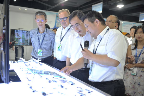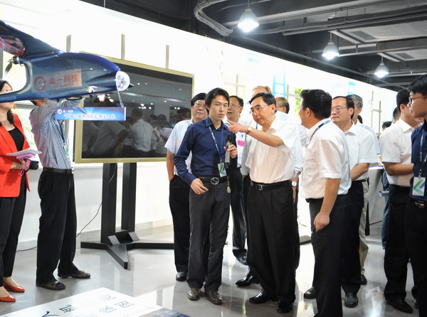 在电子信息展区,创新院引进的裸眼3D展示设备和可穿戴设备引起了朱小丹及参观领导团的浓厚兴趣。他指出,可穿戴设备是今后设计与技术结合发展的一个重要领域,肯定了创新院在这方向的投入。