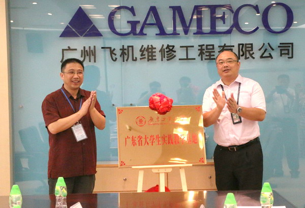 本网讯 我校与广州飞机维修工程有限公司2011年签署协议建立校外实习基地和开展“3+1”培养模式,2013年成功申报为省级实践教学基地。7月2日上午,我校 “广东省大学生实践教学基地”揭牌仪式暨校企联合培养座谈会在广州飞机维修工程有限公司举行。副校长章云出席,并与校企联合培养毕业生交流。广州飞机维修工程有限公司副总经理吴榕新、人力资源总监陈倩敏,我校教务处、机电工程学院、自动化学院等单位负责人等出席活动。