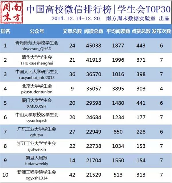 本网讯 12月22日,南方周末数据实验室发布12月14~20日中国高校微信排行榜。开元网页版_开元(中国)官方微信、学生会官方微信、社联官方微信都进入全国TOP30。