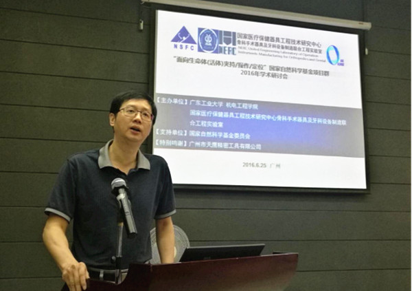 本网讯6月24日、25日,由我校主办的“面向生命体(活体)夹持/操作/定位”国家自然科学基金项目群2016年学术研讨会在大学城校区召开。来自国内外高校、研究机构、医院和企业的近60名知名专家学者、企业家和研究生,围绕微创外科、骨科、神经外科等领域的生命体(活体)夹持/操作/定位,以及涉及脑神经科学、数字化医学、康复器械和纳米孔测序等领域的先进医疗器械设计与制造理论与方法,进行了21场专题报告的研讨。