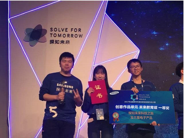 本网讯 12月23日,由中国科协科普部、共青团中央学校部主办, 三星独家赞助并深度参与的“SOLVE FOR TOMORROW探知未来2017年全国青年科普创新实验暨作品大赛”全国总决赛在北京精彩落幕。