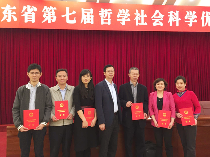 本网讯 12月5日上午,广东省第七届哲学社会科学优秀成果颁奖大会在广州召开,省委书记李希就本届颁奖大会作出批示。我校副校长陈为民、科技处(人文社科处)负责人以及获奖代表参加了此次颁奖大会。本届大会共评出哲学社会科学优秀成果234项,其中一等奖59项、二等奖112项、三等奖63项。我校共有7项成果获奖,其中一等奖2项,二等奖3项,三等奖2项。这是我校继2015年首次获得一等奖、共获6项成果奖后再次取得历史性突破,是我校在广东省哲学社会科学成果奖方面取得的最好成绩。
