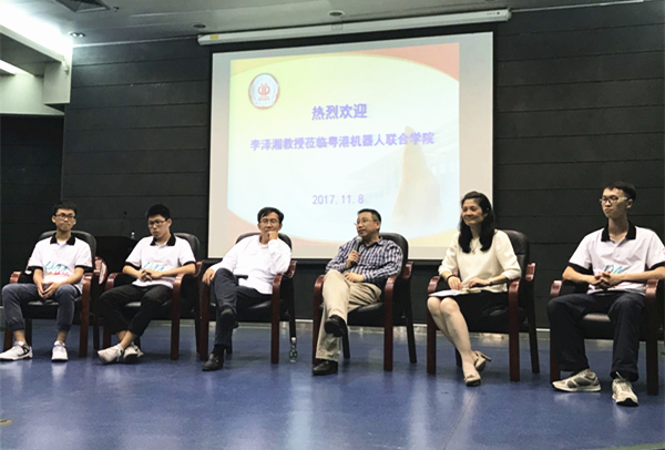 机器人学院同学代表分享了两年学习的心得。李泽湘教授一一解答了与会同学的提问,深入探讨和交流机器人产业的问题。