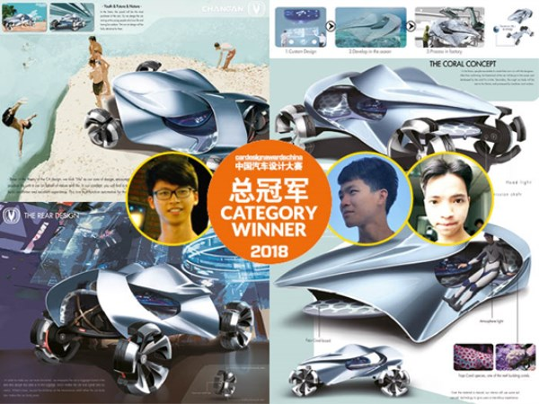 本网讯 4月24日,2018 CDN中国汽车设计大赛决赛结果在北京揭晓。开元网页版_开元(中国)艺术与设计学院参赛学生获得被誉为赛事年度总冠军的“年度最佳学生设计奖”以及本年度10个单项奖中的2项冠军。工业设计系江明辉同学的设计作品“Return To Basic”(指导教师:张勇)荣获“最佳奢华概念奖”总冠军及“年度最佳学生设计奖”;林晓杰、陈业瑟同学的设计作品“Coramotion”(指导教师:张勇)获得“最具创新材料使用奖”单项总冠军,钟志森、谢正宇同学的作品“2025 3D Printed Fitness Car”(指导教师:张勇)取得入围奖。