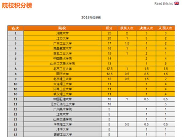 CDN中国汽车设计大赛由汽车设计行业权威媒体Car Design News主办,该赛事旨在挖掘具有潜力的新锐设计人才,主办方每年邀请世界知名汽车厂商的设计总监为比赛设定任务书,参赛选手自选一份任务书,并根据要求提出针对性设计方案,大赛评委由行业专家以及著名汽车厂商的设计总监等担任。2018年,我校在本次大赛积分榜中取得排名第三的优异成绩