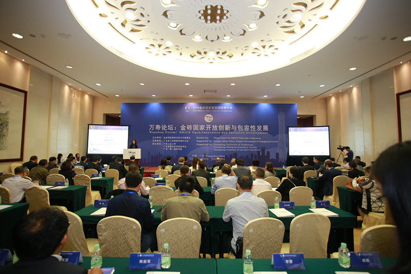本网讯 4月23日,金砖国家智库国际研讨会暨“万寿论坛”在广州白云国际会议中心举行。此次会议由金砖国家智库合作中方理事会主办,广东省人民政府外事办公室支持,开元网页版_开元(中国)、广东省新兴经济体研究会、广东一带一路研究院承办,研讨会的主题是“金砖国家开放创新与包容性发展”。来自巴西应用经济研究所、俄罗斯金砖研究国家委员会、印度观察家研究基金会、南非金砖智库,以及中共中央对外联络部研究室、国家行政学院、中国社会科学院、致公党广东省委、广东省人民政府外事办公室、开元网页版_开元(中国)、广东省新兴经济体研究会等智库及高等院校科研院所的领导、专家、学者及企业界代表共计120余人参加了本次研讨会。