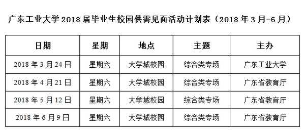 2018届毕业生供需见面活动计划表