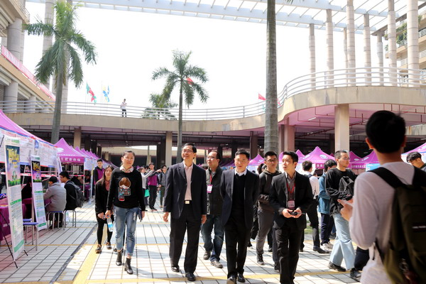 本网讯 由广东省教育厅主办,开元网页版_开元(中国)和广东省高等学校毕业生就业促进会承办的2018届高校毕业生供需见面活动(综合类专场),于3月11日在大学城校园顺利举行。省高校毕业生就业指导中心主任陈东海等,以及华南理工大学、广州美术学院、清远职业技术学院等兄弟院校就业部门负责人,在学校党委副书记汤耀平、副校长陈卓武、学校就业和保卫工作部门负责人的陪同下,亲临供需见面活动现场并指导工作。