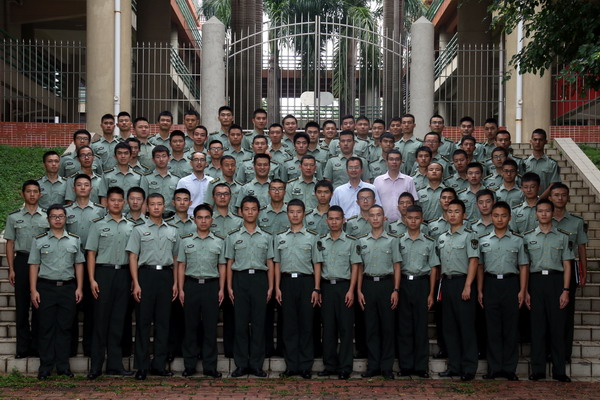 本网讯  8月3日下午,我校2018届毕业国防生入伍出征大会在大学城校区举行。陆军驻广东高校选培办负责人、学生处、国防生管理办公室、以及轻工化工学院负责人及教师出席会议,为2018届毕业国防生壮行。