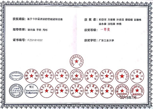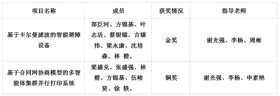 本网讯  由澳门理工学院及澳门计算机学会联合承办的“2018(第十三届)泛珠三角大学生计算机作品赛”总决赛于7月初在澳门理工学院举行。此次由我校计算机学院大学生“小平科技创新团队”“QG工作室”负责设计开发的两项科技作品,《基于卡尔曼滤波的智能避障设备》、《基于合同网协商模型的多智能体集群并行打印系统》分别获得“金奖”(一等奖)和“铜奖”(三等奖)的好成绩,为省为校争光。