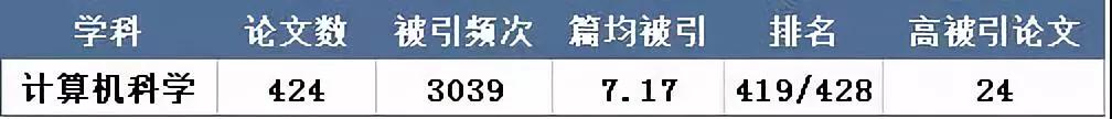 本次更新中,我校计算机科学的ESI论文总数为424篇,总被引频次为3039次,在进入ESI学科排名榜的428个机构当中,我校暂列全球排名419位,有24篇高被引论文。(学科数据见下表)