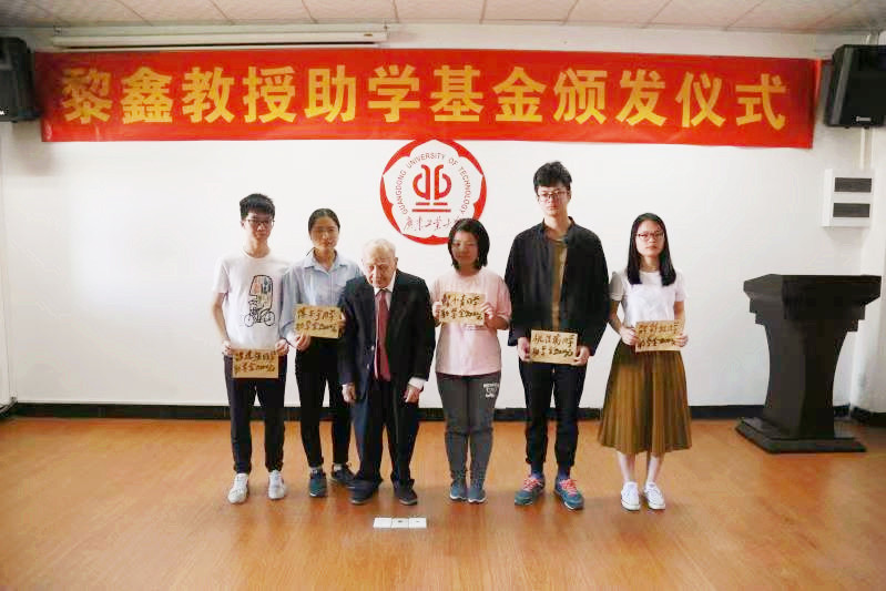 自2007年以来,持续12年,他用自己省吃俭用累积的退休金设立“黎鑫教授助学基金”,资助乳源瑶族自治县民族实验学校、他的家乡和我校等生活有困难的学生,发放助学金累计金额近26万元、170多人次。今年,黎鑫教授向我校外国语学院、计算机学院、艺术设计学院、政法学院、建筑与城市规划学院5名贫困生发放助学金10000元,向乳源瑶族自治县民族实验学校10名特困中小学生发放助学金15000元。
