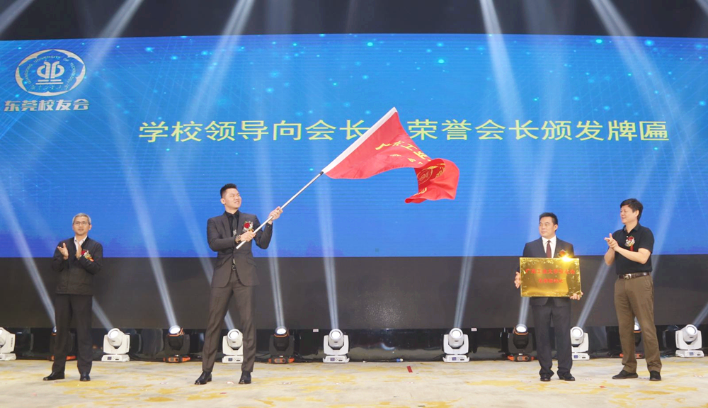 本网讯 10月13日,学校校友会东莞联络处成立仪式在东莞市举行。学校原党委书记、校友会会长苏一凡,学校副校长、校友会副会长陈卓武,广东宏远篮球俱乐部总经理朱芳雨,以及学校各学院、各相关部处负责人出席会议,东莞近千名校友参加了成立仪式。