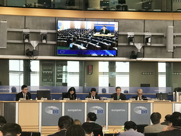 方海教授在欧洲议会大厦发表演讲(左起第四位)