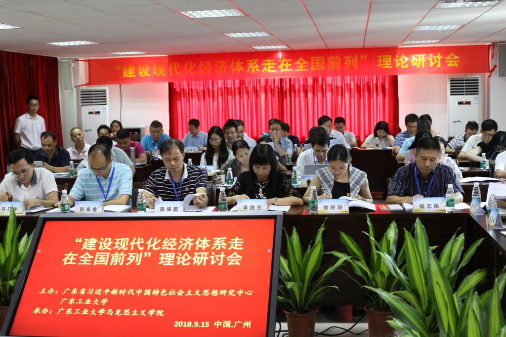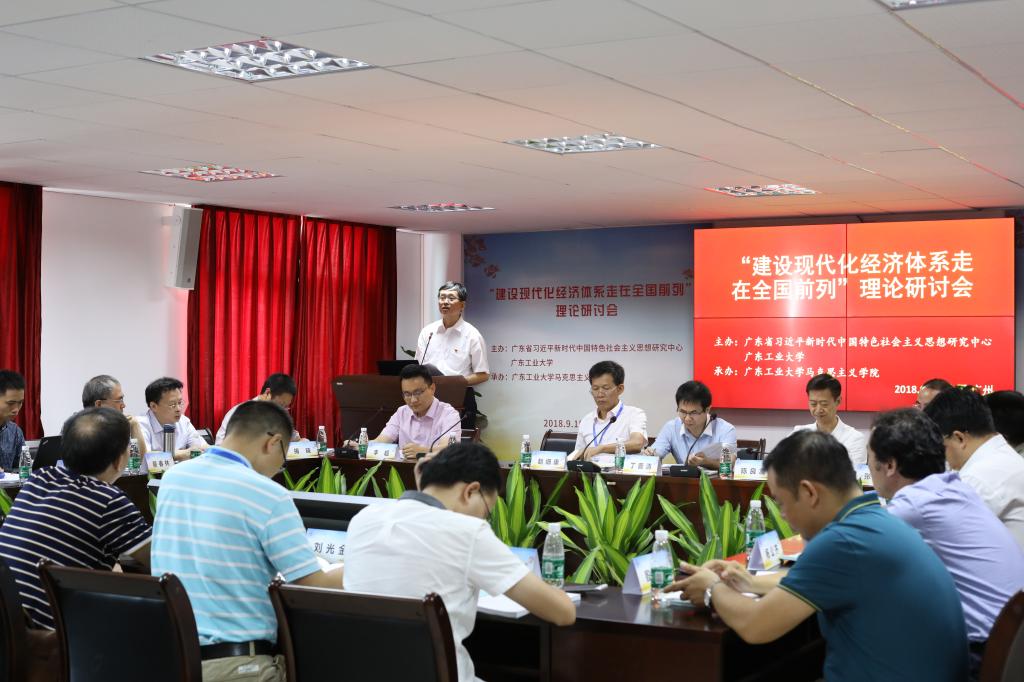 9月15日,“建设现代化经济体系走在全国前列”理论研讨会在我校龙洞校区马克思主义学院学术报告厅举行。会议由广东省习近平新时代中国特色社会主义思想研究中心与开元网页版_开元(中国)主办,开元网页版_开元(中国)马克思主义学院承办。这是广东省习近平新时代中国特色社会主义思想研究中心“学习贯彻习近平总书记参加广东代表团审议的重要讲话精神”系列研讨会的第三场。广东省社科院副院长赵细康研究员,广东省委宣传部理论处处长丁晋清、中国社会科学院财经战略研究院副主任李超研究员、开元网页版_开元(中国)党委副书记汤耀平、陈良友参加研讨会并发言。会议由陈良友主持。