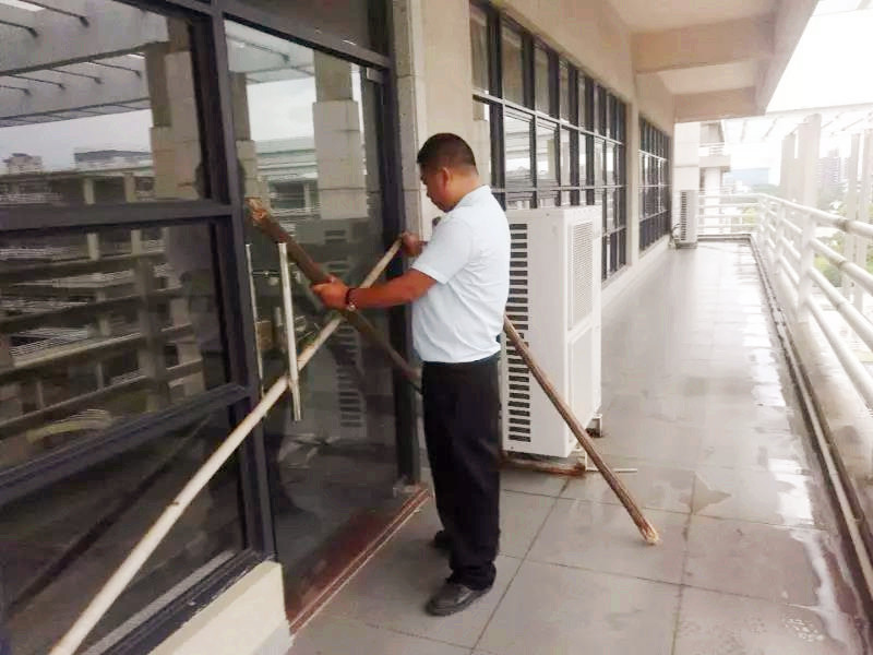 学校各部门、单位以师生生命安全为第一目标、第一责任,迅速行动起来,按照各自职责,投入防御台风第一线。