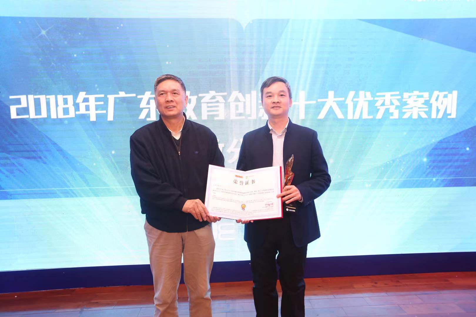 案例评委、广东省教育督导学会会长陈健为我校颁发获奖证书