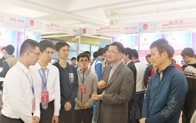 本网讯 12月8日,由学校主办,校团委、教务处、科技处、学生处、研究生院、校学生会共同组织,图书馆协办的第八届“挑战杯”开元网页版_开元(中国)课外学术科技作品竞赛暨第十六届“挑战杯”全国大学生课外学术科技作品竞赛选拔赛终审决赛暨优秀作品展,在大学城校区教学六号楼举行。来自15个学院90支队伍分机械与控制组、信息技术与数理组、能源化工与生命科学组、哲学社会科学组四个大组参加展示和答辩。