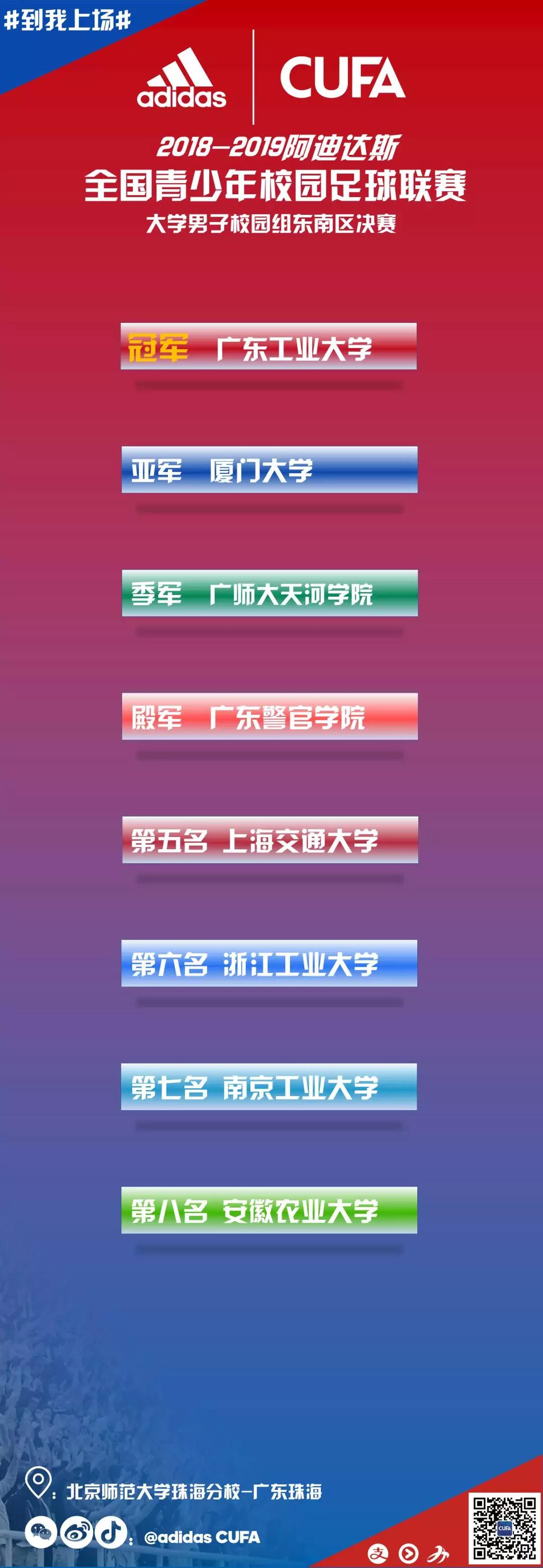 本网讯 3月8日15:00,2018-2019 adidas CUFA校园组东南区冠军争夺战在北京师范大学珠海分校体育场展开。广工男子足球队六战0失球,最终以总比分0(4):(3)0击败厦门大学,成功卫冕东南区冠军。6月,广工将参加全国总决赛。