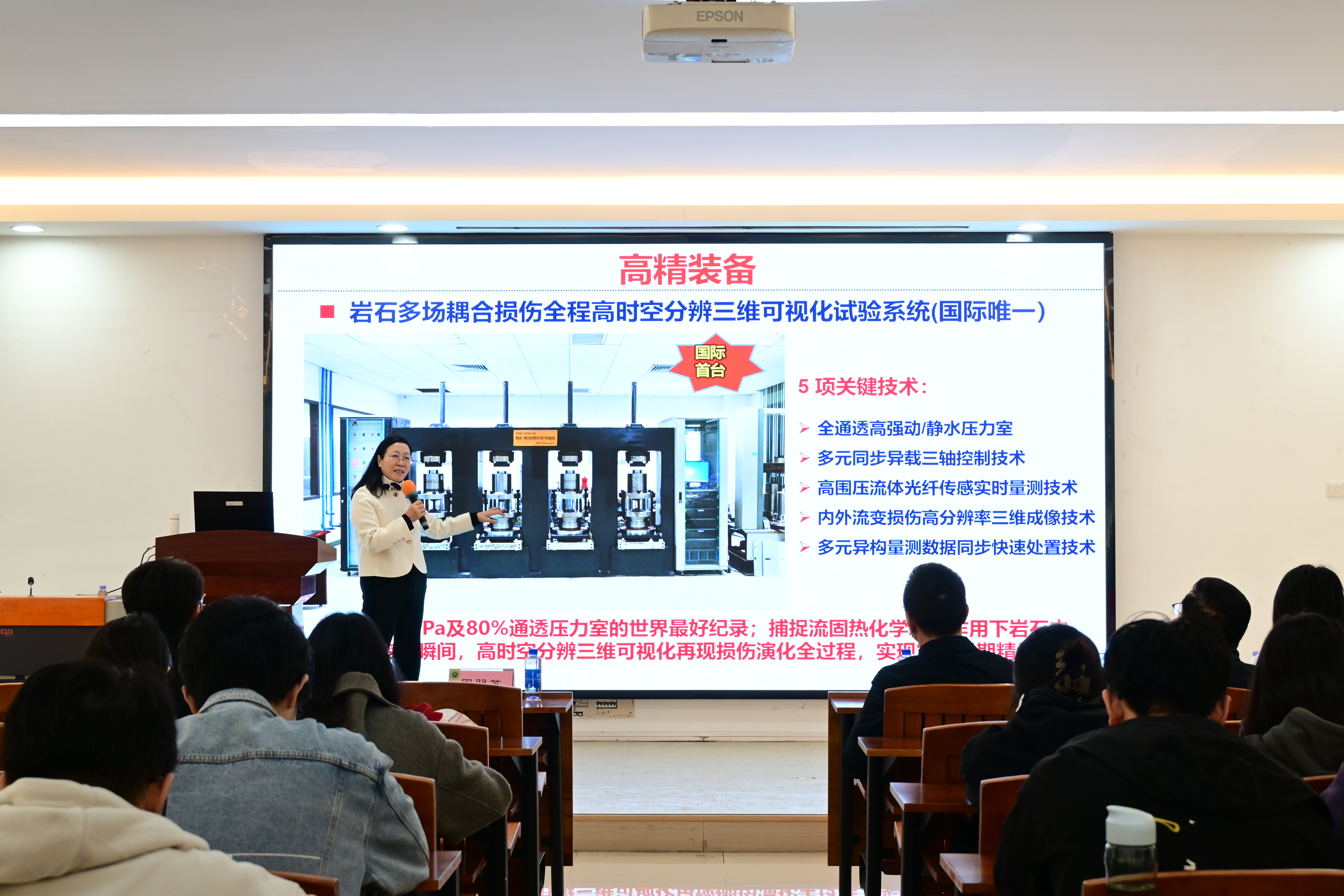 同时,周翠英教授通过介绍红层这一典型地质条件,展示了诸多红层地质构造的照片,形象地描述该地质的工程特性,着重强调了红层灾变防治工作的重要性。周翠英教授鼓励同学们勇于探索新兴技术,将理论知识与实际应用紧密结合,不断挑战自我,追求卓越。